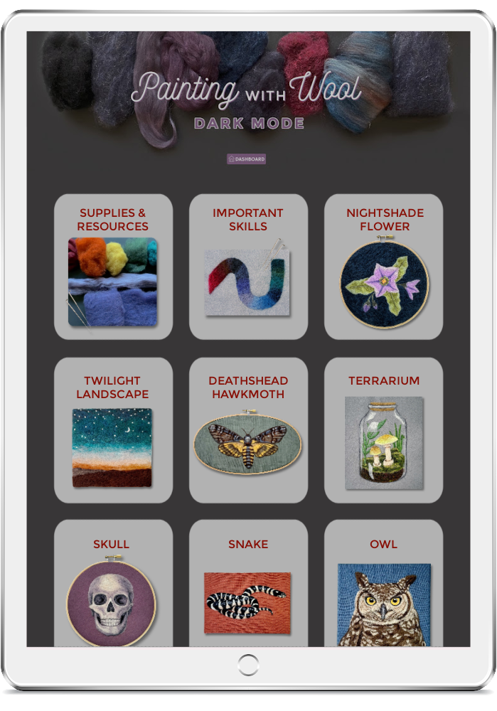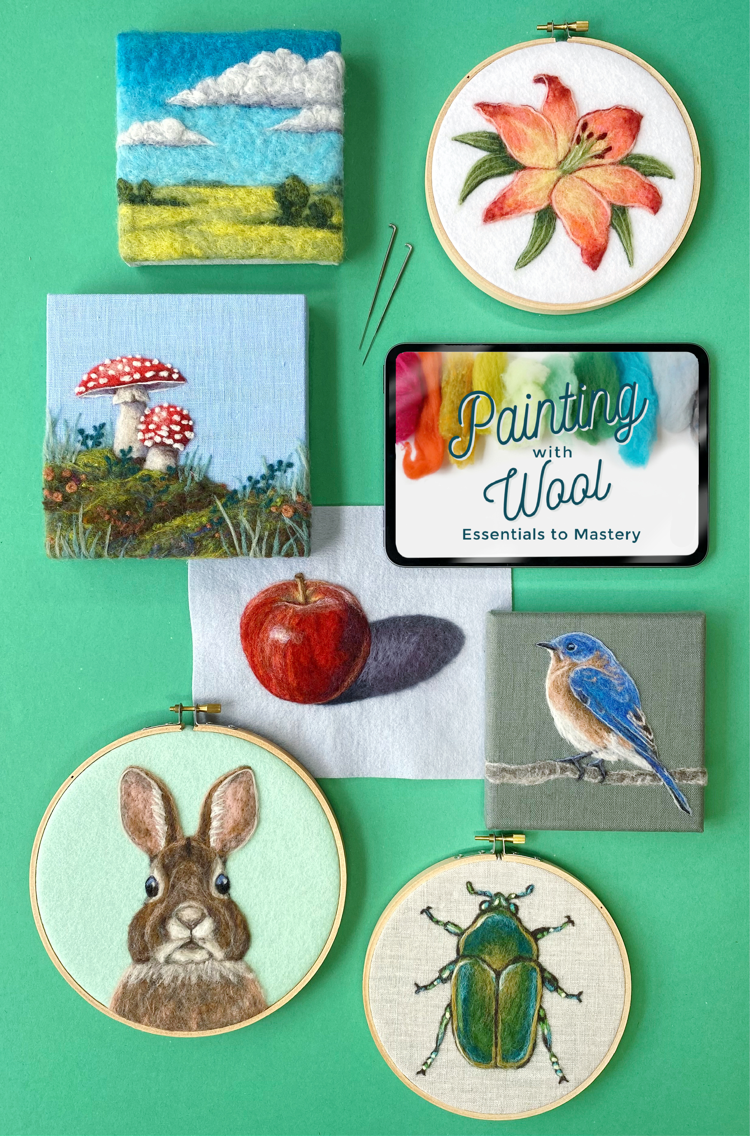 - Instant (and lifetime) access to tutorials for seven needle felting projects, lessons on essential skills, supplies and more. Work through the course and create art at your own pace.